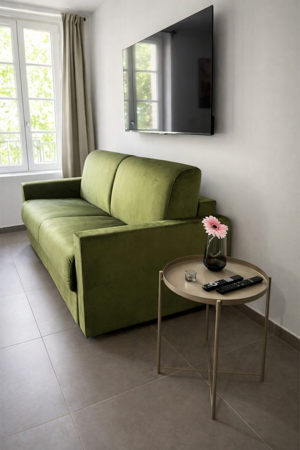 D’une capacité de une à quatre personnes le le studio supérieur propose 35 m² avec un lit double 160 et canapé-lit.