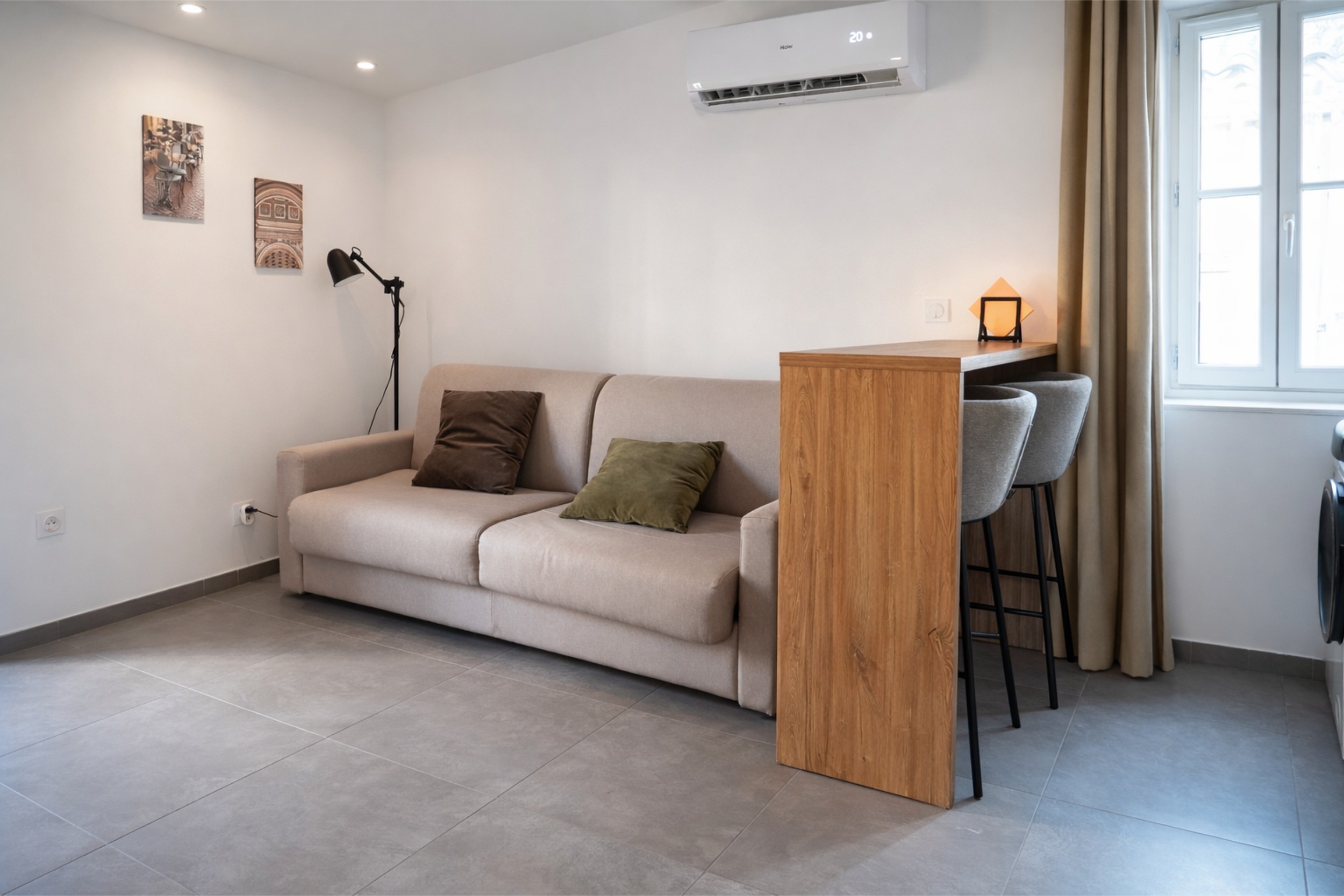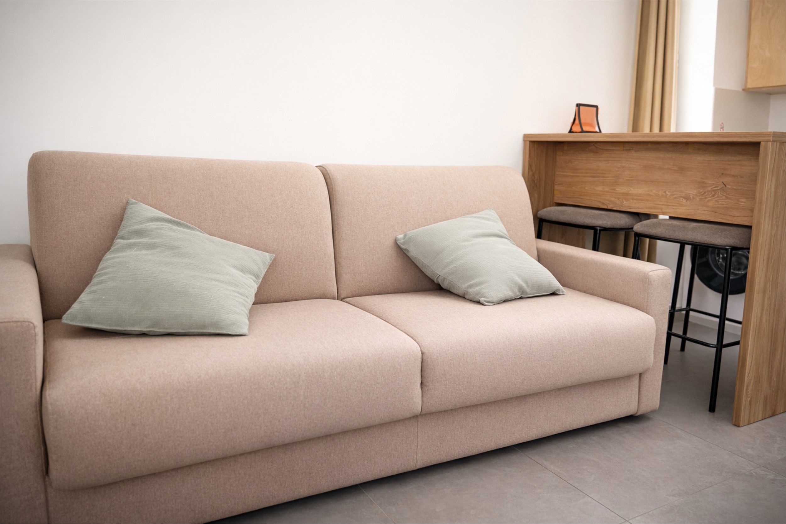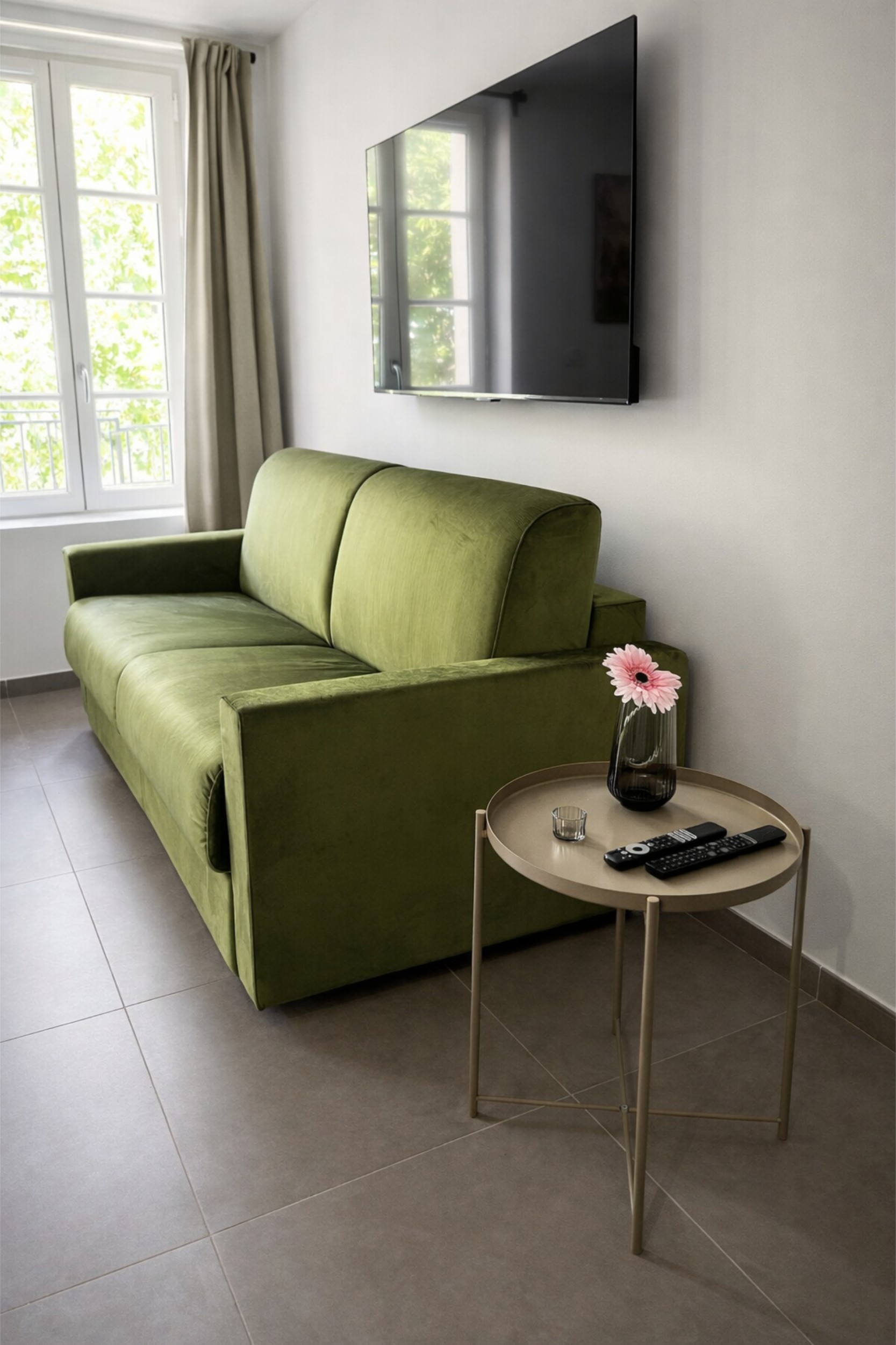 Notre studio standard peut accueillir deux personnes. Idéal pour les couples familles en vacances à Velaux. Dispose d’un canapé lit convertible 160cm.
